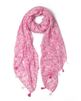 Fleur Pastel Floral Lightweight ScarfLike a stroll through an English country garden, this lightweight summer scarf is sprinkled with a delicate floral pattern in blue, pink, yellow, and green on a crisp white background. Finished with soft white tassels, its art-like design is pretty, fresh, and effortlessly charming...