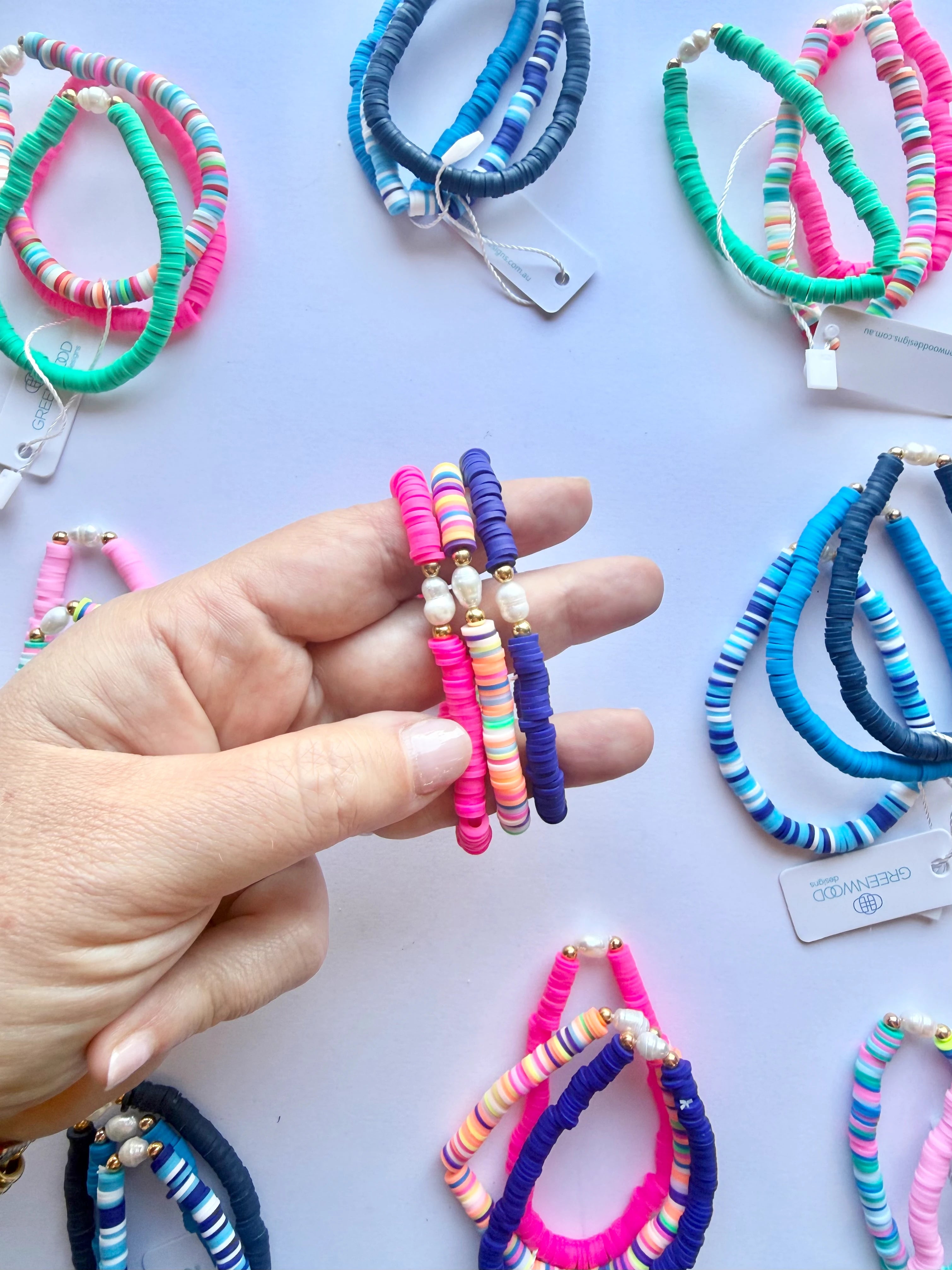 Wear them together for an easy, layered look or mix and match them with your favourite styles from our Heishi range to create your own unique stack. The elastic fit makes them comfortable and easy to slip on, perfect for busy mornings and on-the-go styling.