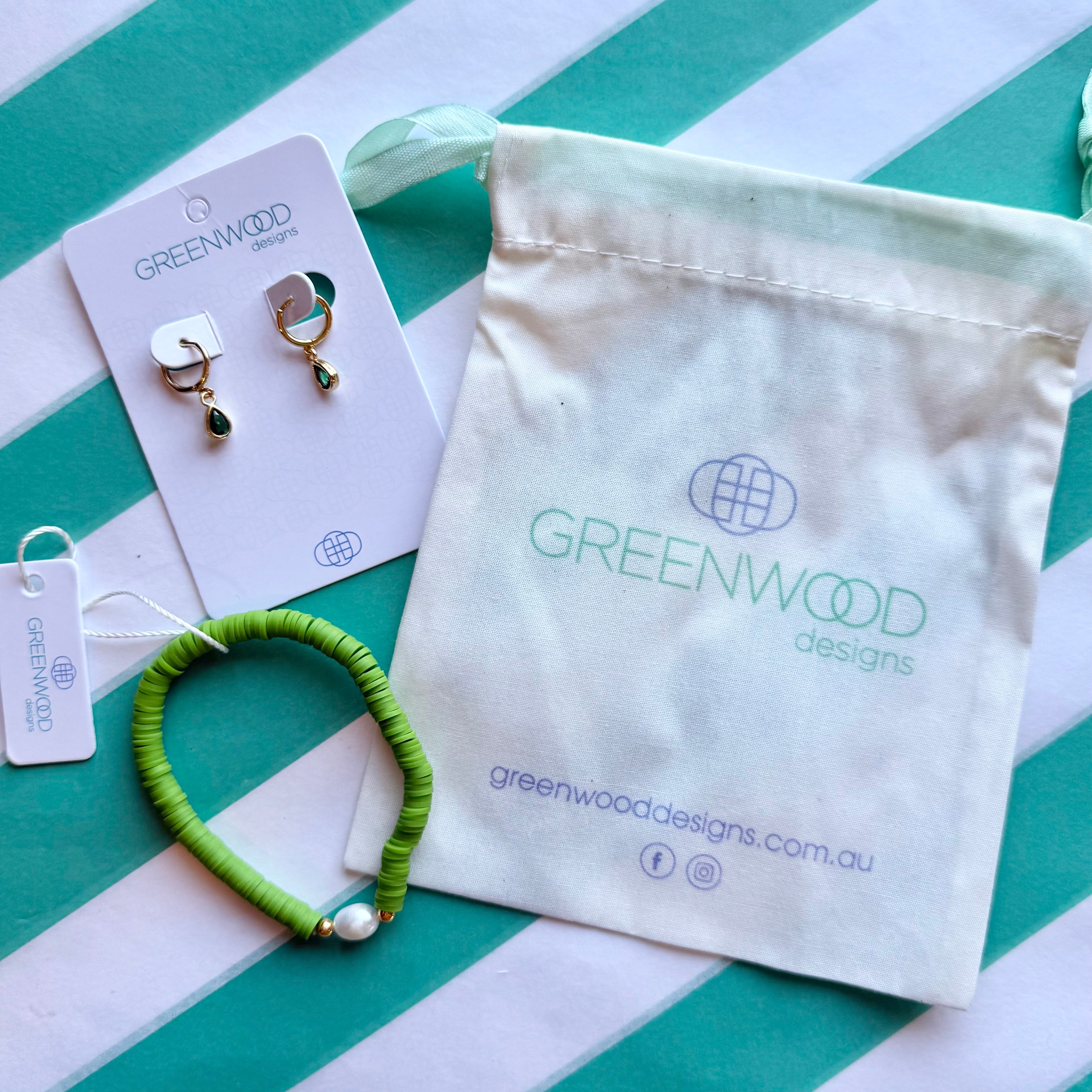 Featuring a pearl heishi bracelet and gold huggie gem drop earrings, these are the perfect treat for a friend, workmate, or even your kid’s teacher.