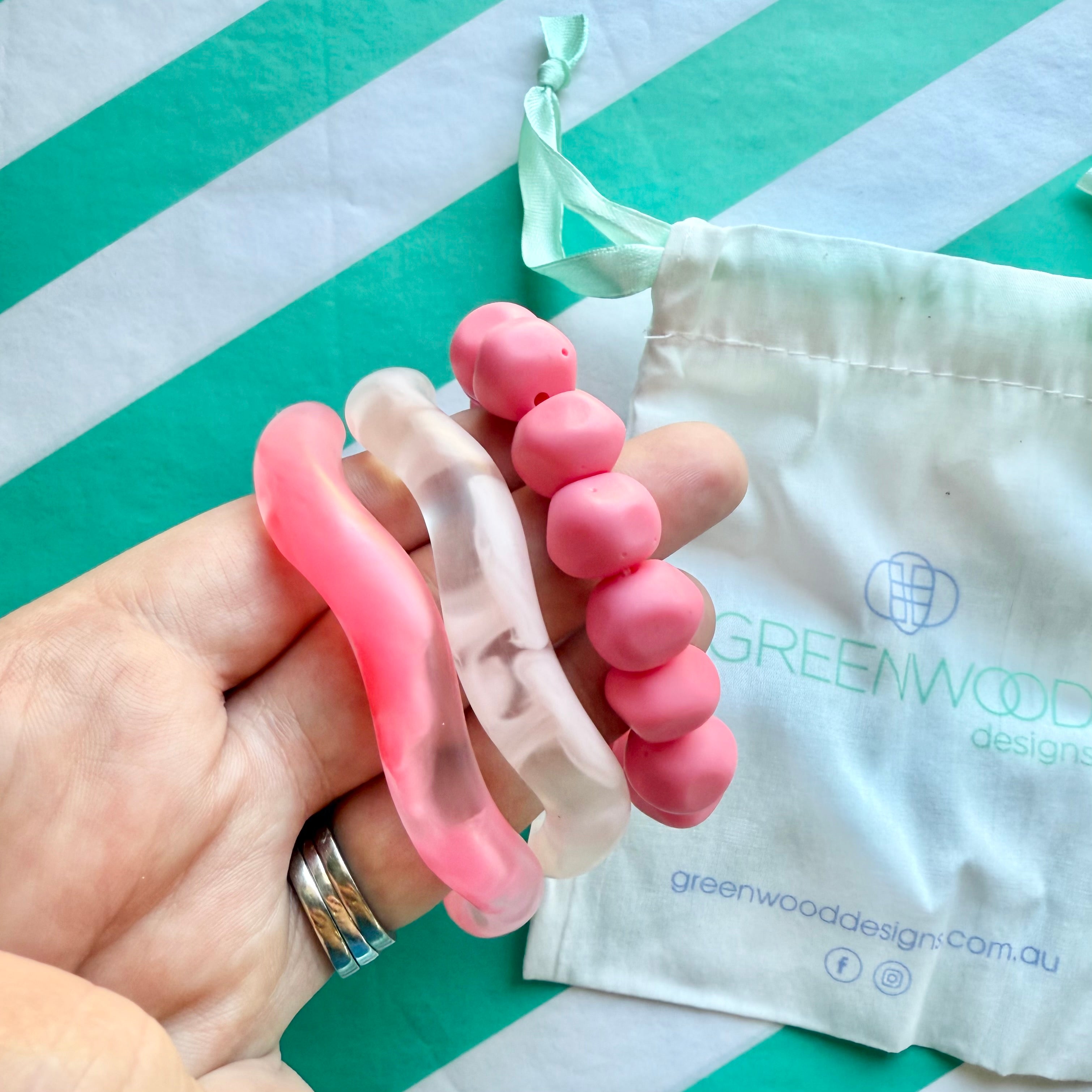 Add a pop of colour and fun with this bracelet/bangle gift bundle! It includes an elasticated rock bracelet...