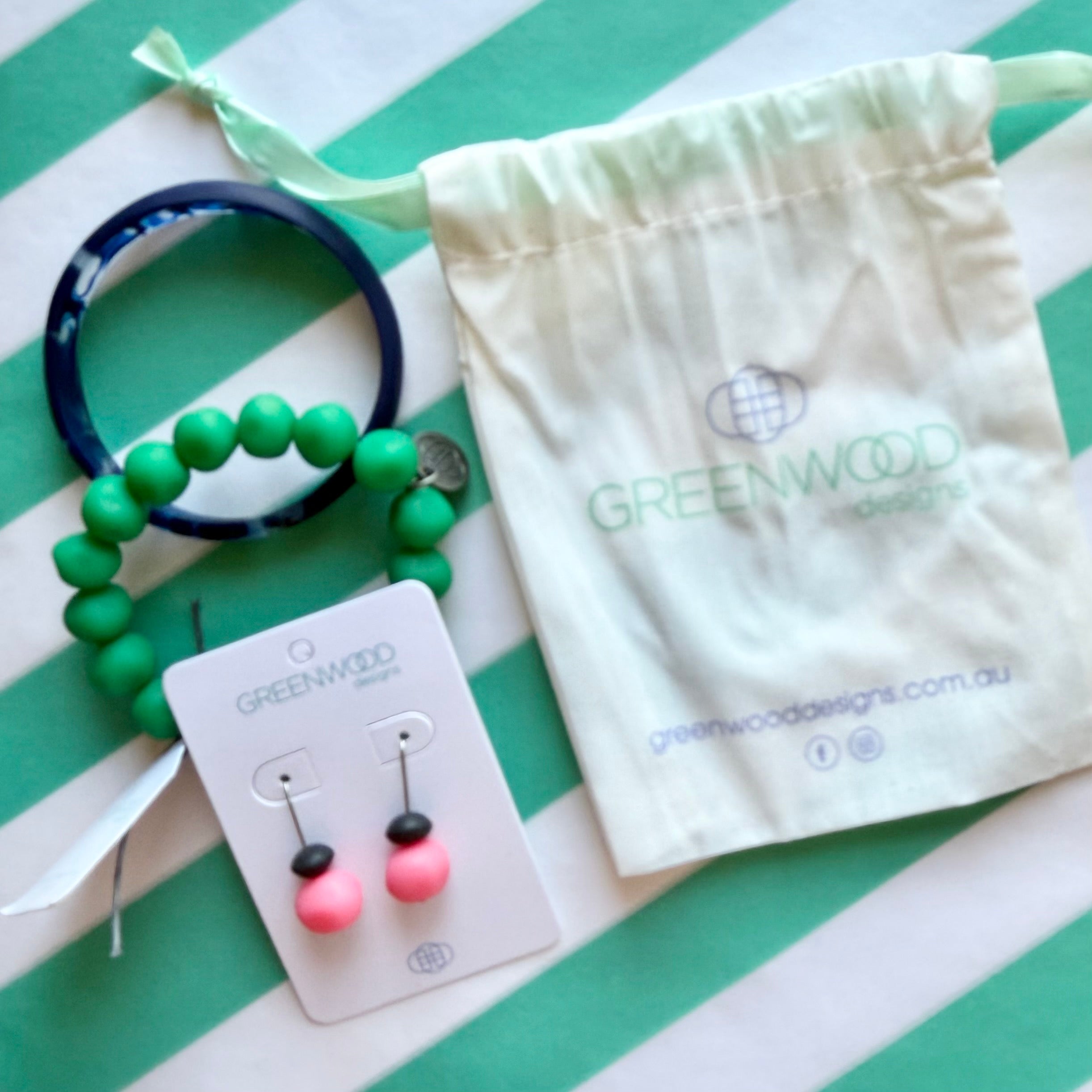 Add a pop of colour and fun with this jewelry gift bundle! It includes a resin organic...