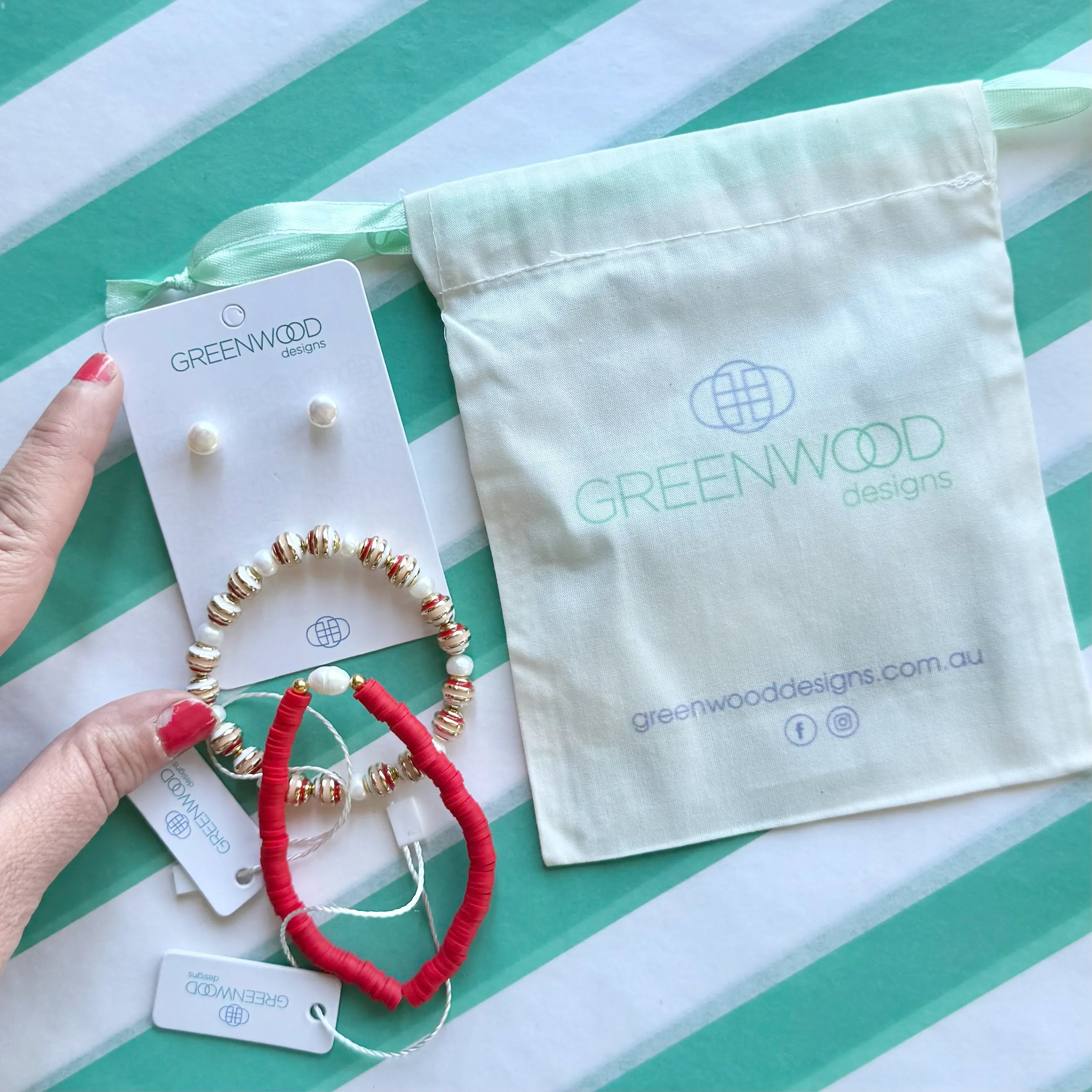 Timeless and elegant with a touch of fun — this jewelry gift bundle includes a pair of classic small pearl studs, a stretchy Heishi bracelet, and a beautiful enamel and pearl beaded bracelet. Effortlessly wearable and perfect for everyday style. A lovely choice for teacher gifts, Kris Kringle, or a little treat for yourself. Comes packaged in a lovely gift bag, ready for gifting!