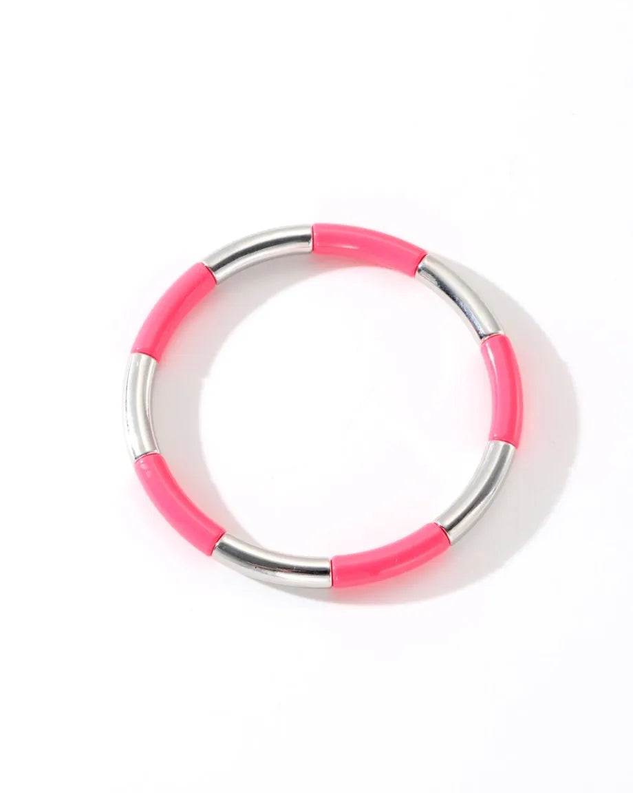 Bright, colourful, and oh-so-fun – our elasticised enamel bracelets are made for stacking and mixing with ease. Wear them solo for a little pop of colour or pile them up with your favourites across the range for full-on gorgeous wrist candy. Easy to slip on, comfy to wear, and designed to fit most wrist sizes, they’re the perfect way to brighten up an outfit!