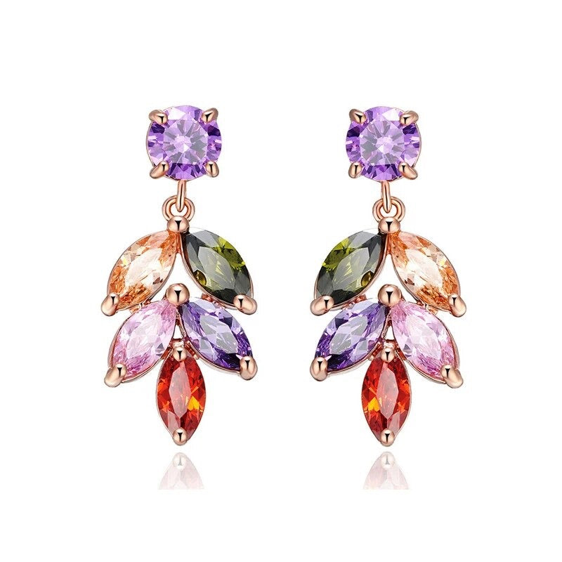 Meet Crystal – your new go-to for a touch of sparkle and charm! These lightweight stunners come in a stunning colour combo of lilac, green, pinks, and a hint of red, all elegantly plated in rose gold. With a sweet floral-inspired shape, these petite earrings at 2.5cm x 1cm are the perfect size to add a dash of glamour without overwhelming your style. Small, stylish, and oh-so charming – Crystal is here to make your ears shine! Rose gold plated posts.