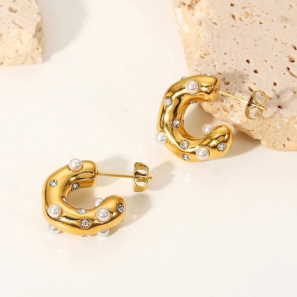 Ella Gold Hoops with Mini Faux Pearls and Crystals