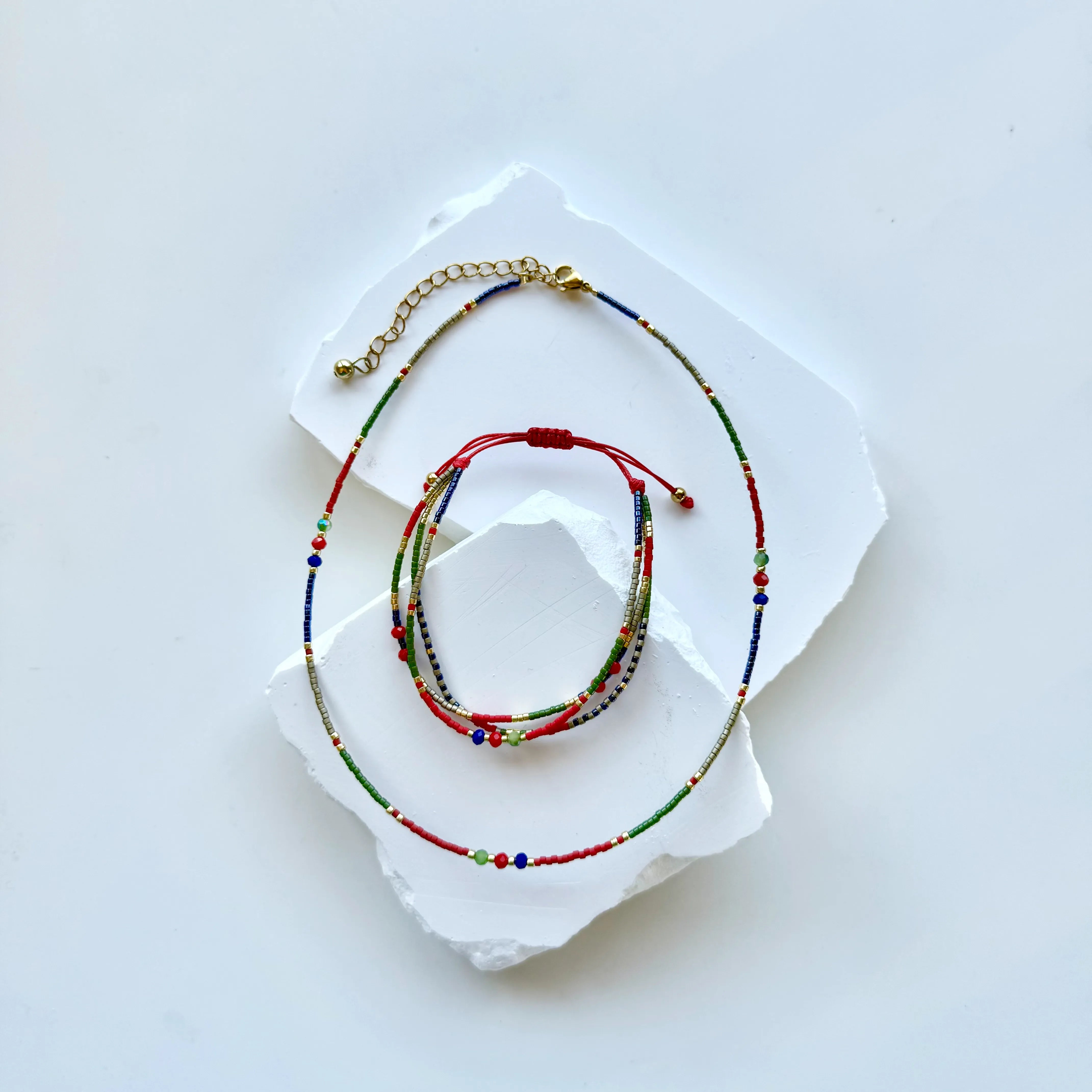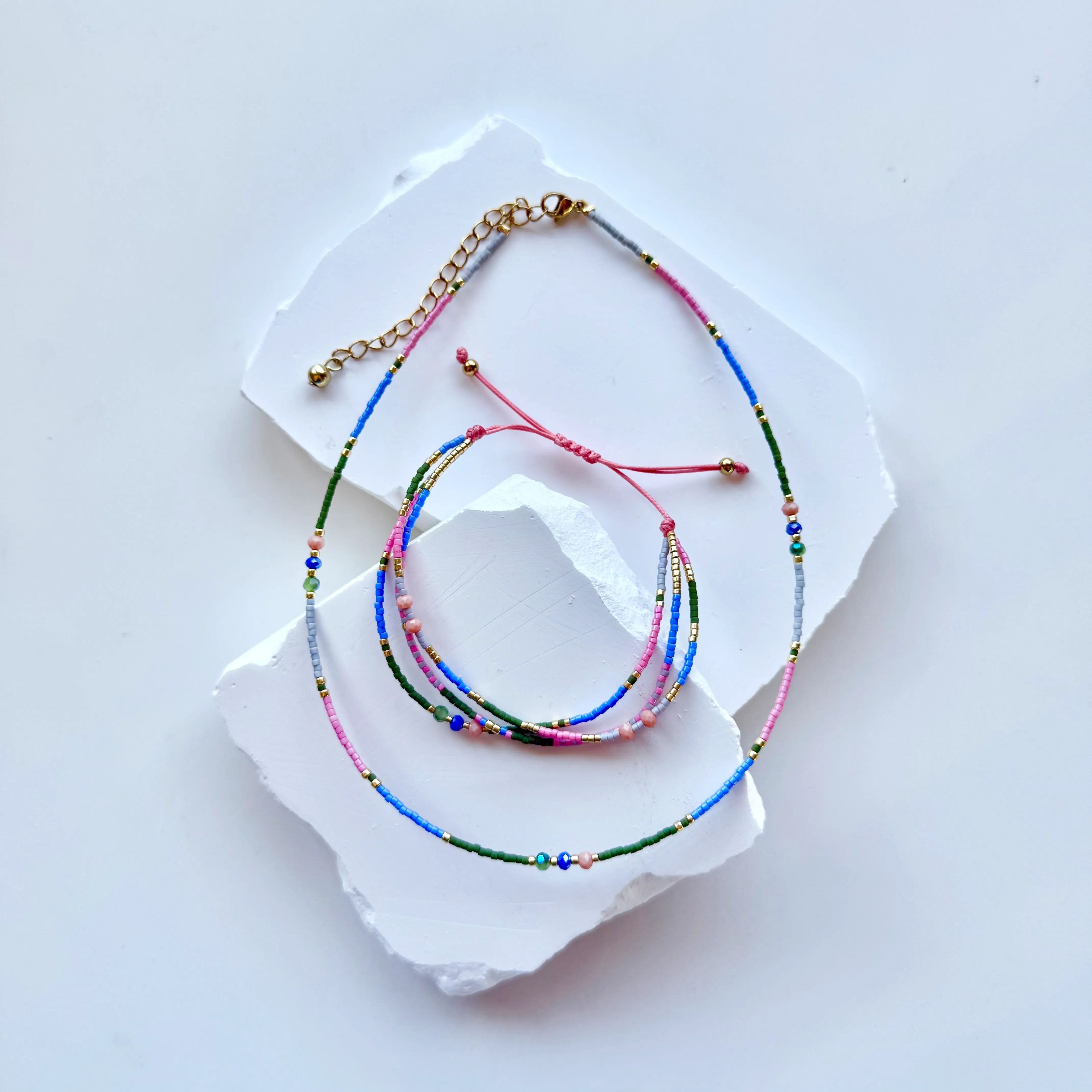 Delicate, colourful and easy to wear, this glass bead necklace is a lovely little everyday piece. Featuring fine glass beads with subtle gold detailing, it adds just the right amount of sparkle without feeling overdone. With an adjustable clasp, it’s easy to style at the perfect length for you.