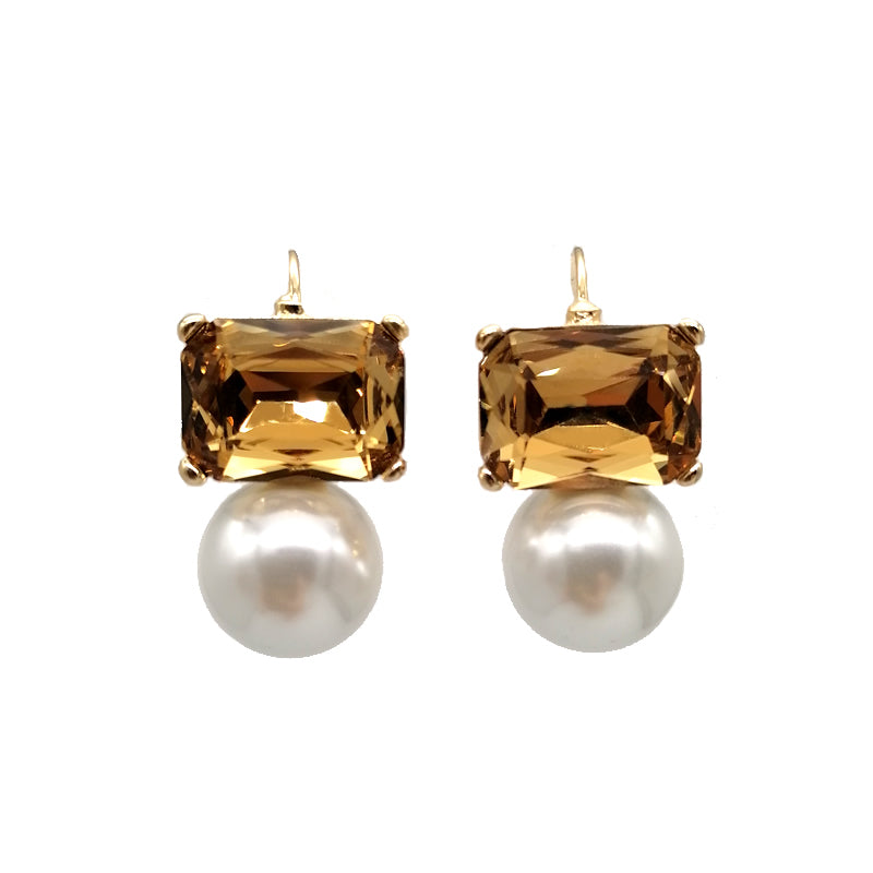 Maggie Gold Rectangular Crystal with Faux Pearl Earrings