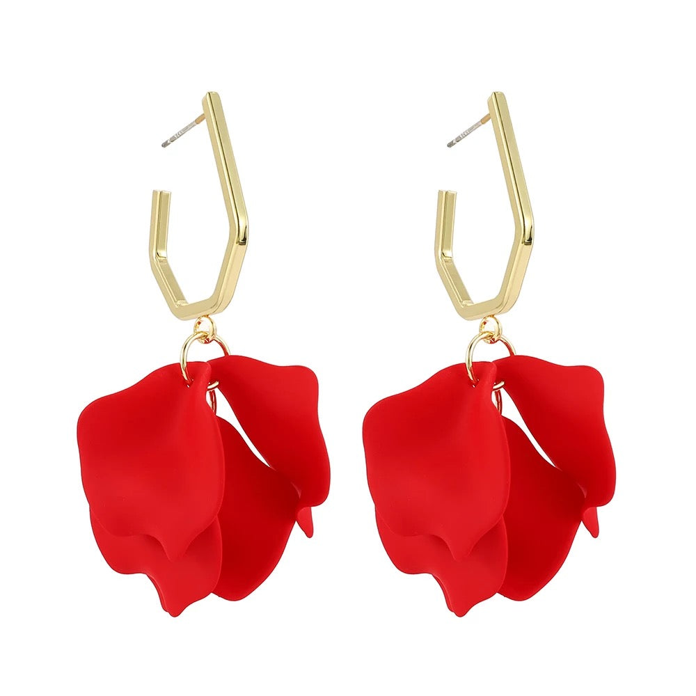 Add a touch of elegance and playfulness to your outfit with these earrings. The gold hoops and red resin petals create a stunning contrast, while remaining lightweight for all-day wear. Elevate your style with these unique and gorgeous earrings!