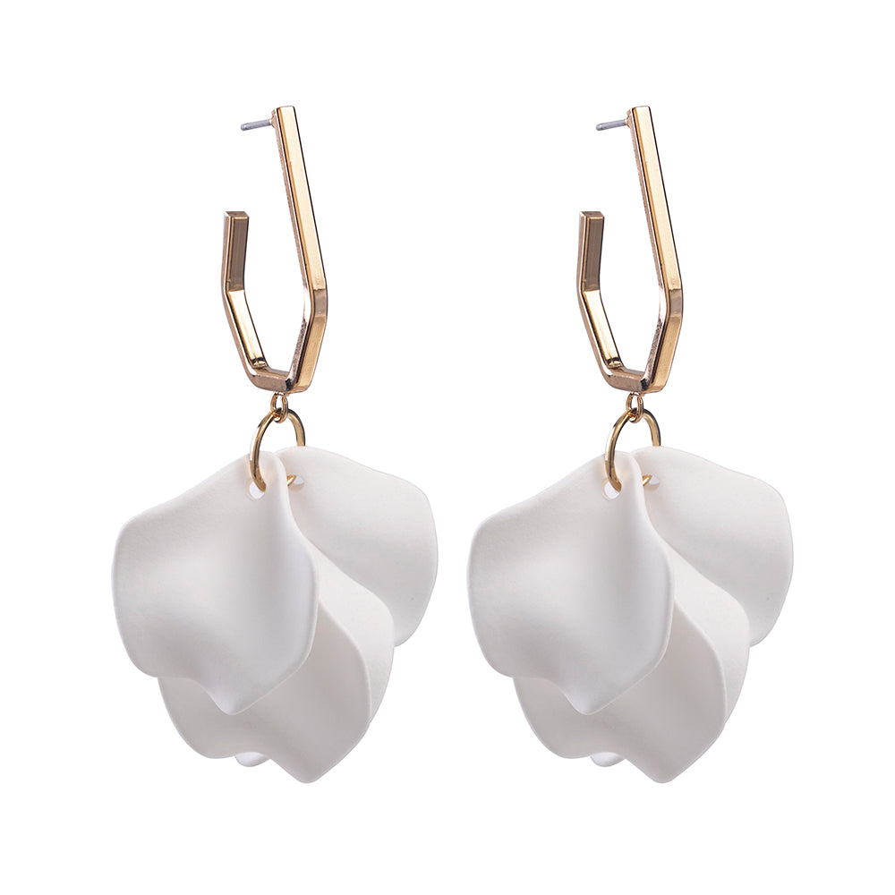 Add a touch of elegance and playfulness to your outfit with these earrings. The gold hoops and white resin petals create a stunning contrast, while remaining lightweight for all-day wear. Elevate your style with these unique and gorgeous earrings!