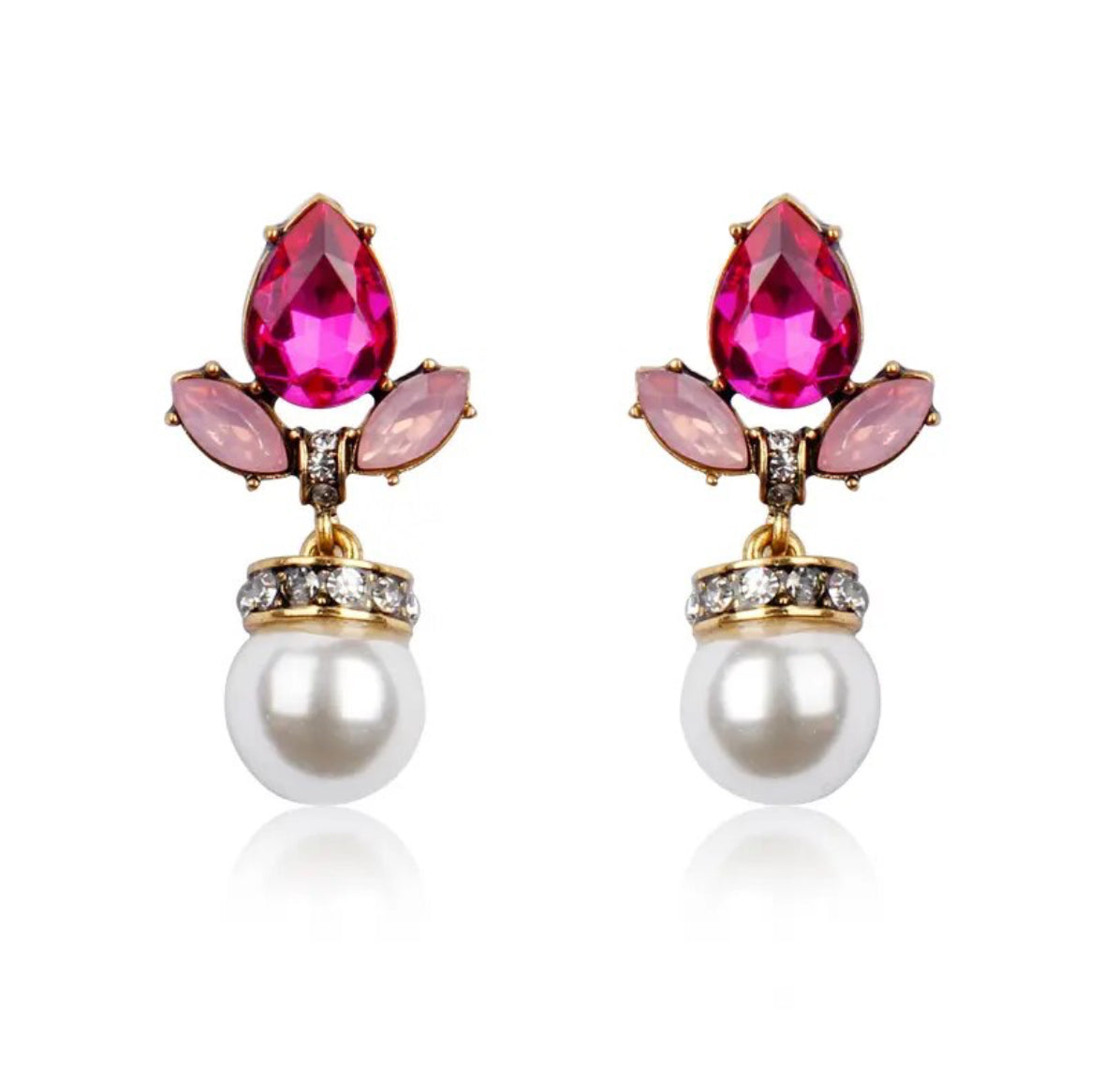 Meet Rosie – your pink party essential! These dazzling earrings flaunt shades of bright and light pink, adorned with diamentes and a playful faux pearl drop. Perfect for adding glam to a formal occasion or spicing up your night out.
