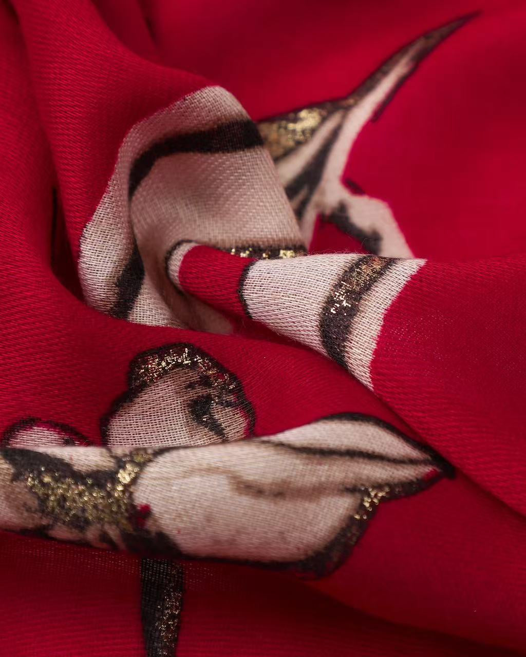 Meet Tessa, the scarf that’s as striking as it is sophisticated! With her bold, large-scale tulip print in cream and black set against a rich red background, she’s the perfect statement piece for spring and summer. A touch of gold detailing adds just the right amount of sparkle, while softly fringed edges keep things effortlessly chic. Wrap up in Tessa and let your style bloom!