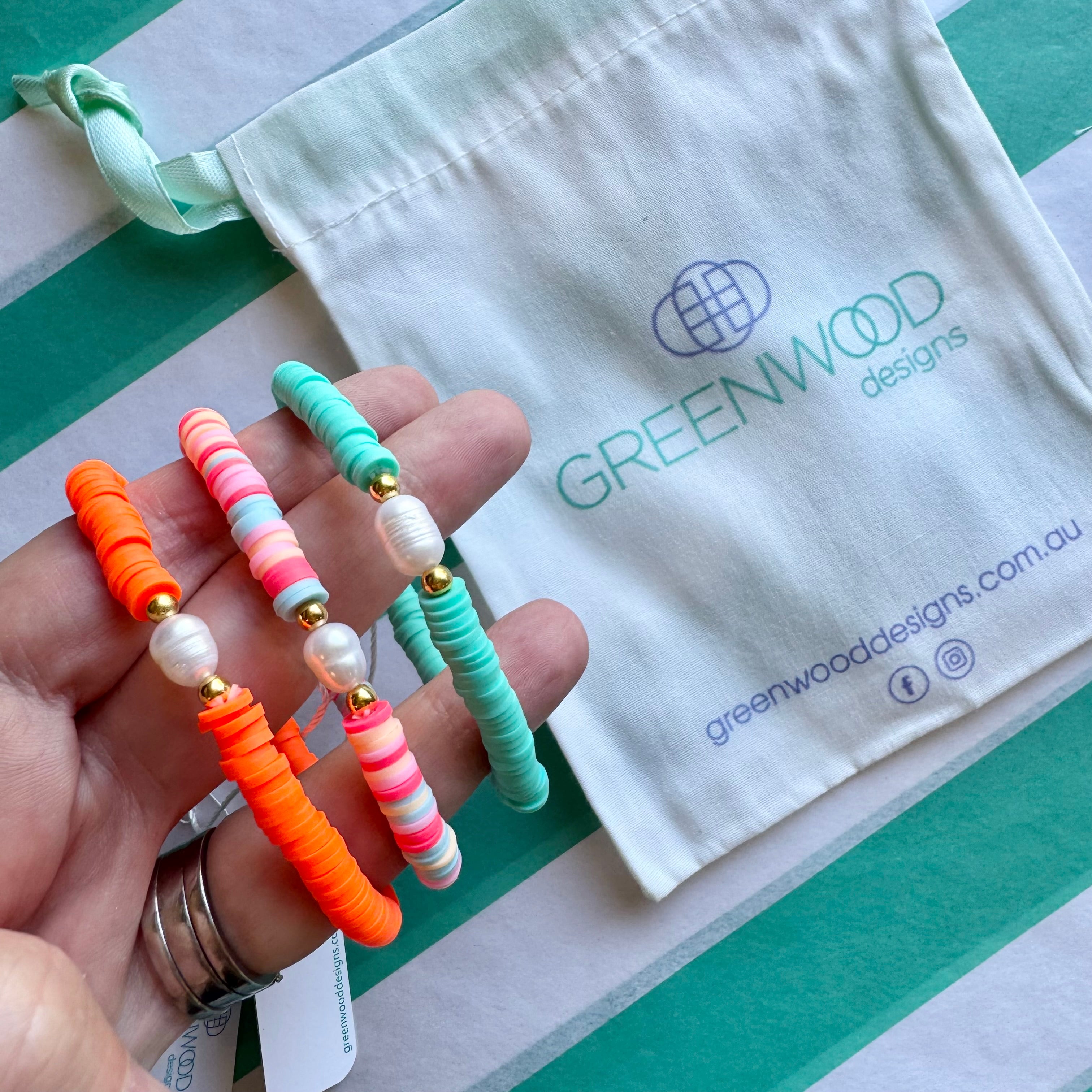 Celebrate Christmas in style with our Fun Lovin' Gal Bundle — three gorgeous Heishi bracelets designed to mix, match, and stack your way. 🎄✨