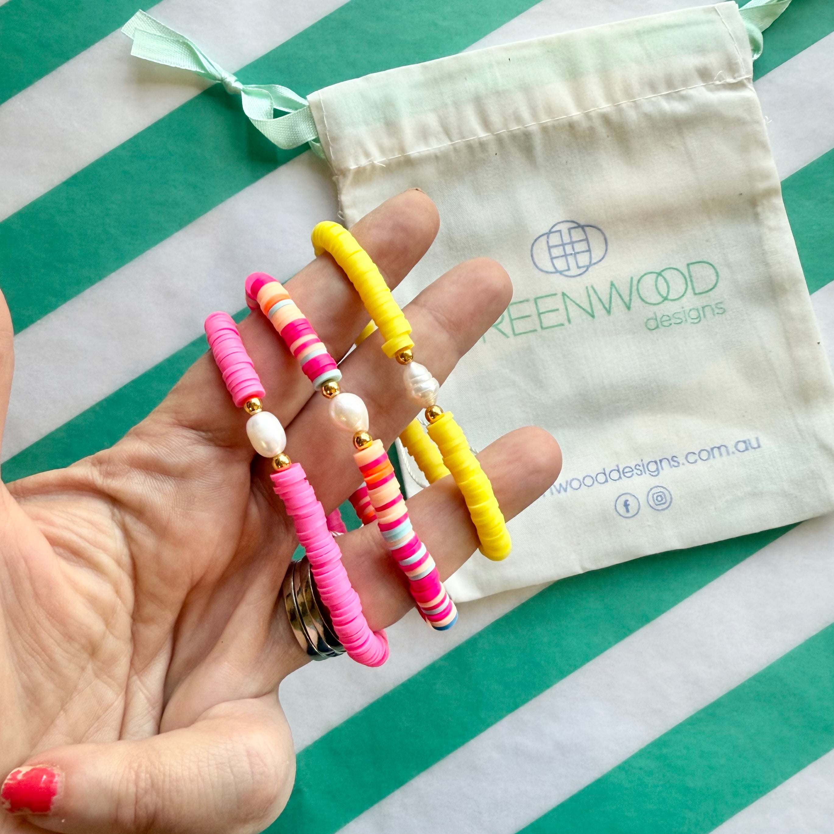 Celebrate Christmas in style with our Fun Lovin' Gal Bundle — three gorgeous Heishi bracelets designed to mix, match, and stack your way. 🎄✨
